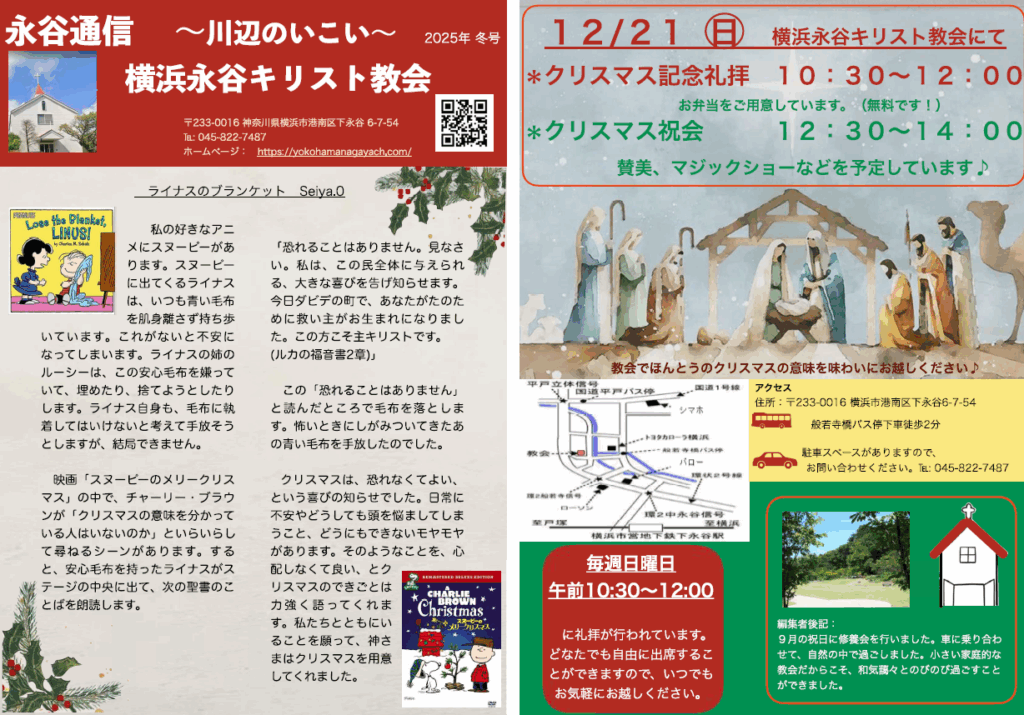クリスマス礼拝・祝会By yokohamanagayach / 2025年11月23日 日時:12月21日 日曜日 10時30分〜12時(礼拝) 12時30分~14時(祝会) 場所:横浜永谷キリスト教会